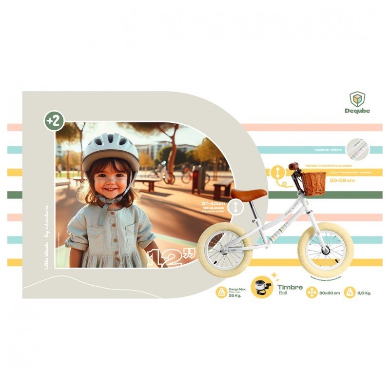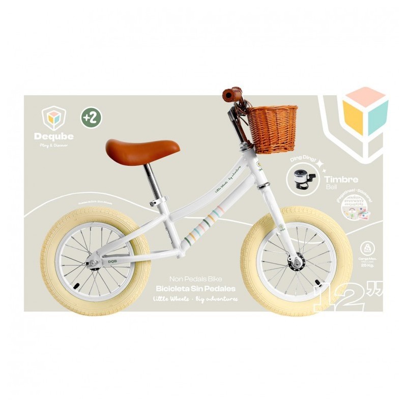Edad recomendada: +2 años. Bicicleta de equilibrio ultraligera, ya que su cuadro pesa apenas 3kg y no posee pedales, de esta forma los niños la pueden manejar y mover con facilidad. Sus componentes son de calidad, incluidas las ruedas que son anti pichazos. Esto garantiza una gran durabilidad. Tanto el manillar como el sillin son ajustables en altura. Incorpora empuñaduras de cuero y una cesta delantera para transportar tus cosas.