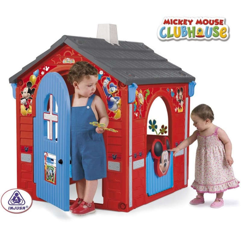 CASA MICKEY. Casa con una puerta principal delantera con pestillo y buzón y dos pequeñas ventanas laterales. En color rojo, está inspirada en los personajes de la película Disney, Mickey Mouse. Adecuada para uso exterior e interior. Dispone de licencia oficial Disney y se fabrica en España La casita Country de Mickey está recomendada para niños de más de 3 años. Dimensiones: 100 x 95 x 121 cm.