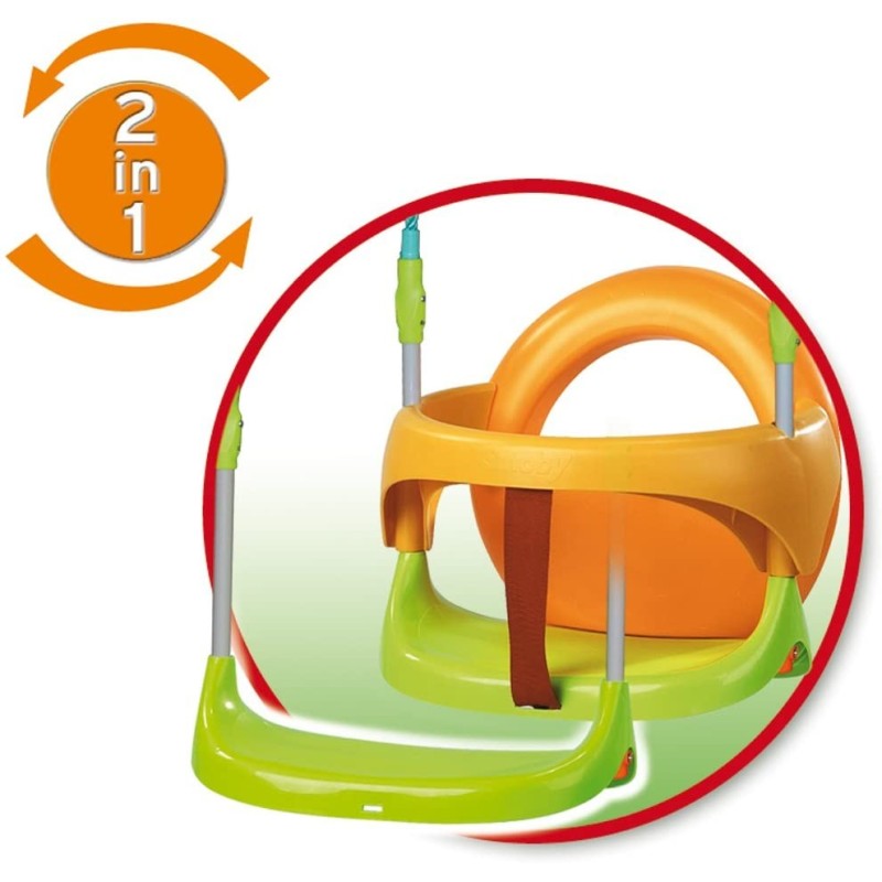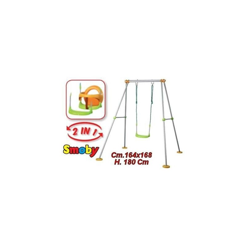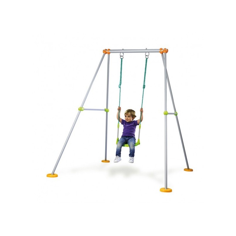 Columpio infantil. Altura: 180 cm. Estructura de tubo de acero de fácil ensamblado y alta resistencia. Asiento de plástico rígido y seguro, anillo de seguridad separable, Protectores en la terminación de todos los tubos.