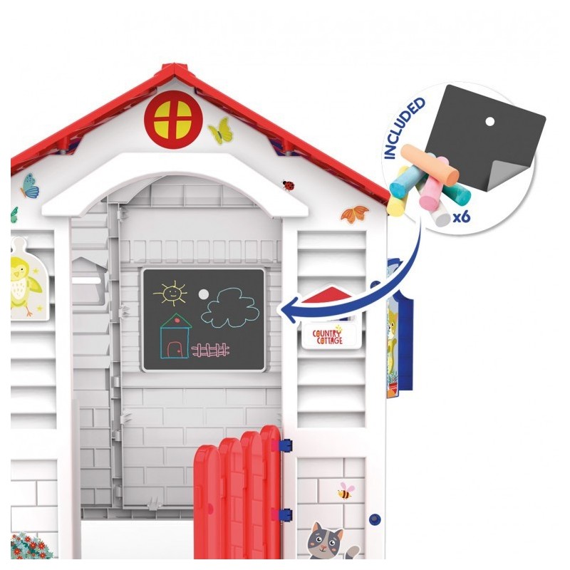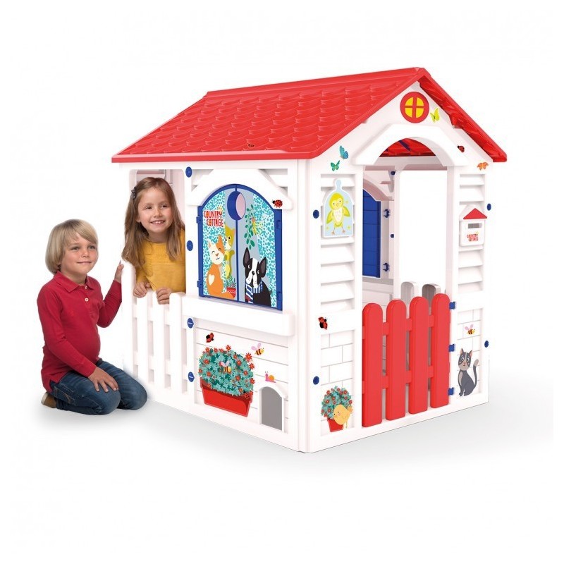 Edad recomendada: +24 meses. Medidas 84 x 103 x 104 cm. Gran Casita de Juguete para niños y niñas a partir de 24 meses, la casita ofrece un gran espacio de juego para inventar y crear divertidas historias con todos tus amigos. Casita de plástico de óptima resistencia, fácil montaje y apta tanto para interior como para exterior. Las casitas de juguete permiten que niños y niñas establezcan sus propios roles emulando su entorno y reproduzcan e interpreten diversos papeles, practicando juegos de imitación muy importantes en su formación. Fabricada en plástico resistente y duradero, puede ser usada tanto en interior como en exterior; incluye adhesivos para decorarla y hueco para mascotas.