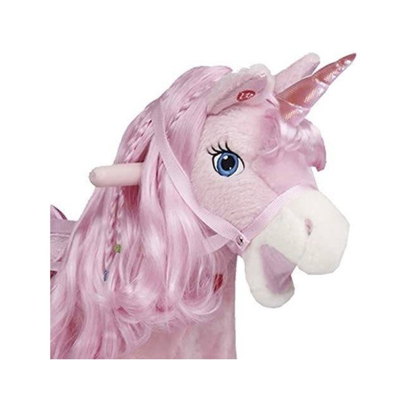 Edad recomendada: +3 años. Precioso balancín unicornio Rosa. Incluye agarraderas a los lados de la cabeza, su pelo es muy suave. Ayuda a que los peques adquieran seguridad y fuerza.