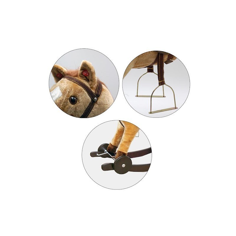 Edad recomendada: +2 años. Caballito cowboy con sonido, ruedas y pañuelo en el cuello.