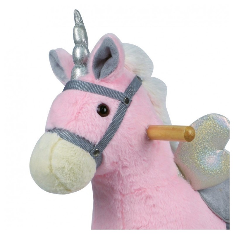 Edad recomendada: +18 meses. ¡Ha llegado la hora de unas cabalgadas mágicas a lomos del unicornio! De terciopelo estilo peluche muy suave, con sus alas y su cuerno. Este fiel compañero despertará la imaginación de los más pequeños. Incluye sonidos de galope. Promueve el desarrollo del sentido del equilibrio así como la autonomía y la motricidad.