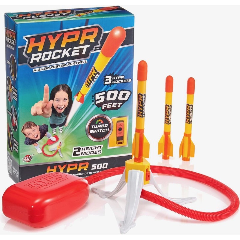 Edad: +8 años. Vuela más alto, más rápido, más lejos. Alcanza nuevas alturas increíbles con HYPR Rocket, más alto que los edificios más altos, ¡hasta 500 pies asombrosos! ¡Sal al aire libre y activo con HYPR, los cohetes voladores más lejanos! No. 1 para altura: solo HYPR Rocket tiene el modo de interruptor turbo patentado para los vuelos más altos. El modo normal es como cohetes regulares, perfecto para áreas más pequeñas como el patio trasero o el jardín No solo para niños: por lo general, la persona más pesada pisando la almohadilla Blast volará más alto. Los niños pueden elegir el modo turbo mientras los adultos usan el modo normal. Se instala en solo 30 segundos: con materiales duraderos y de la más alta calidad, HYPR es ultra rápido de configurar y jugar, y no necesita baterías Disfruta de horas de diversión HYPR Rocket con amigos y familiares en el jardín o parque