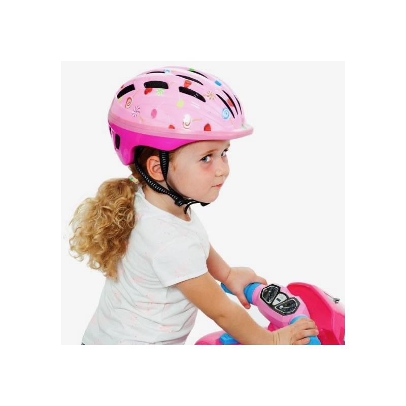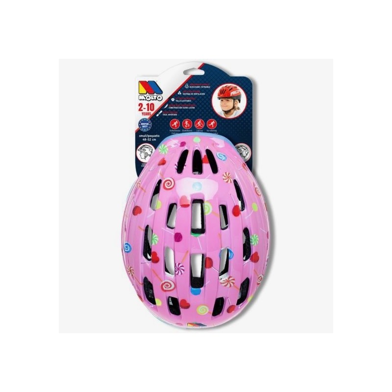 Casco infantil MLT Rosa. Seguro, apto para bicicletas, patinaje, esqui, patinete, patines, scooter, skate board, monopatín, BMX y cualquier otro deporte. Para niños de 2 a 5 años. El material de la carcasa exterior es de PVC, con material absorbente forro de espuma EPS, correa ajustable y regulador para el correcto ajuste de la cabeza, agujeros de ventilación y almohadillas ajustables. Resistentes al impacto, por lo cual permite realizar al aire libre cualquier tipo de deporte con seguridad. Medidas de 48 - 52 cms. Talla S