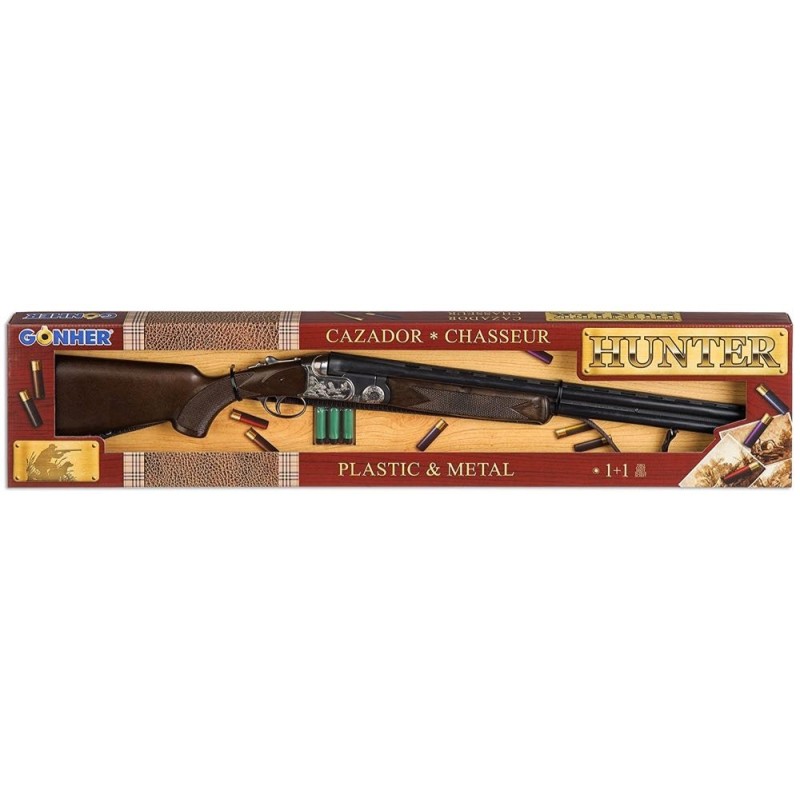 Escopeta de caza superpuesta con cuerpo de metal y cañón de plástico. Fabricada en España. Juguete de metal de alta calidad. Utiliza fulminantes de 1 disparo. Fulminantes no incluidos. Edad recomendada: a partir de 5 años. Dimensiones del producto: 84 cm.