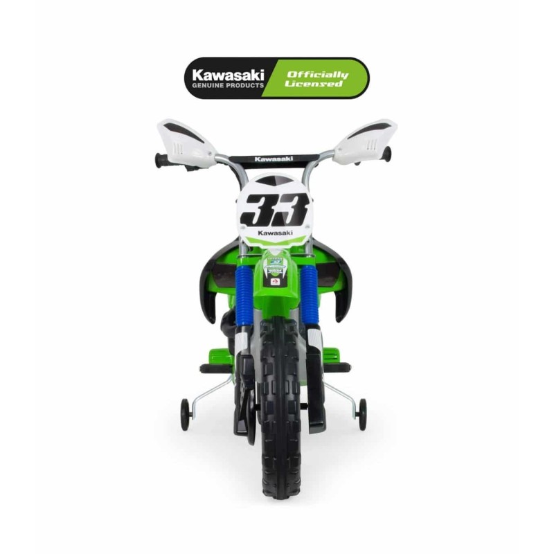 La Moto Thunder Kawasaki 12V de Injusa tiene la licencia oficial de la marca Kawasaki. Alcanza una velocidad máxima de entre 5 y 6 km/h a través de su acelerador en su empuñadura derecha. Su rueda trasera lleva unas bandas de goma para conseguir un mayor agarre y ganar más estabilidad al conducirla. Batería y cargador incluidos.