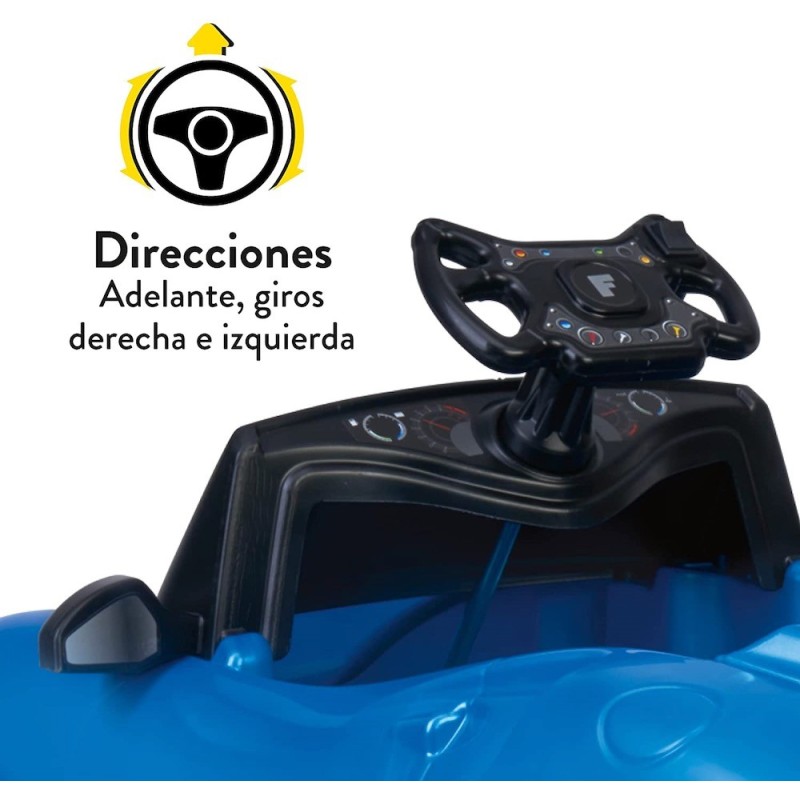 My Feber Hybrid Car 2x1 es el primer coche de batería que incluye batería + pedales. Dos formas divertidas de conducir el mismo coche. ¡Fácil de conducirlo! Presiona el botón acelerador situado en el volante o pedalea para ir hacia adelante, giros derecha e izquierda y a una velocidad máxima de 5 Km/h (o más si pedaleas al mismo tiempo). Características adicionales asiento ajustable de 3 posiciones, 4 ruedas para una gran estabilidad, batería de 12V y cargador. Está diseñado para niños de 3 años en adelante.