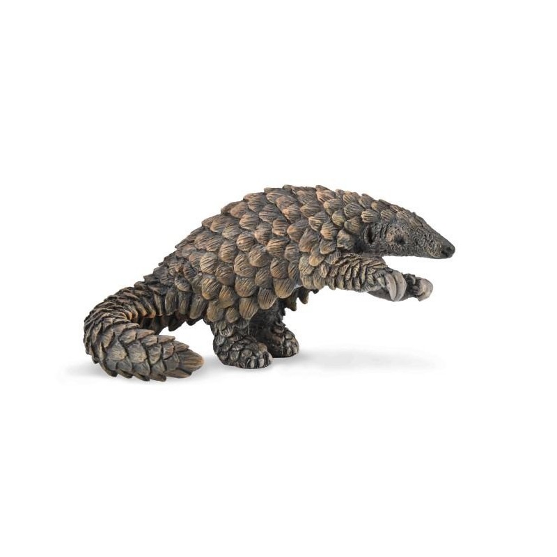 9.5cm x 3.6cm Datos Curiosos: Los pangolines, también conocidos como osos hormigueros escamosos, pertenecen a los mamíferos más inusuales del reino animal. Está cubierto de escamas por todas partes. Lleva a sus crías en la espalda y forma un rollo cuando es atacado o en peligro. El pangolín vive en sabanas, bosques o praderas de Asia y África y es el mamífero más traficado del mundo. No es de extrañar que pertenezca al grupo de especies en peligro de extinción.