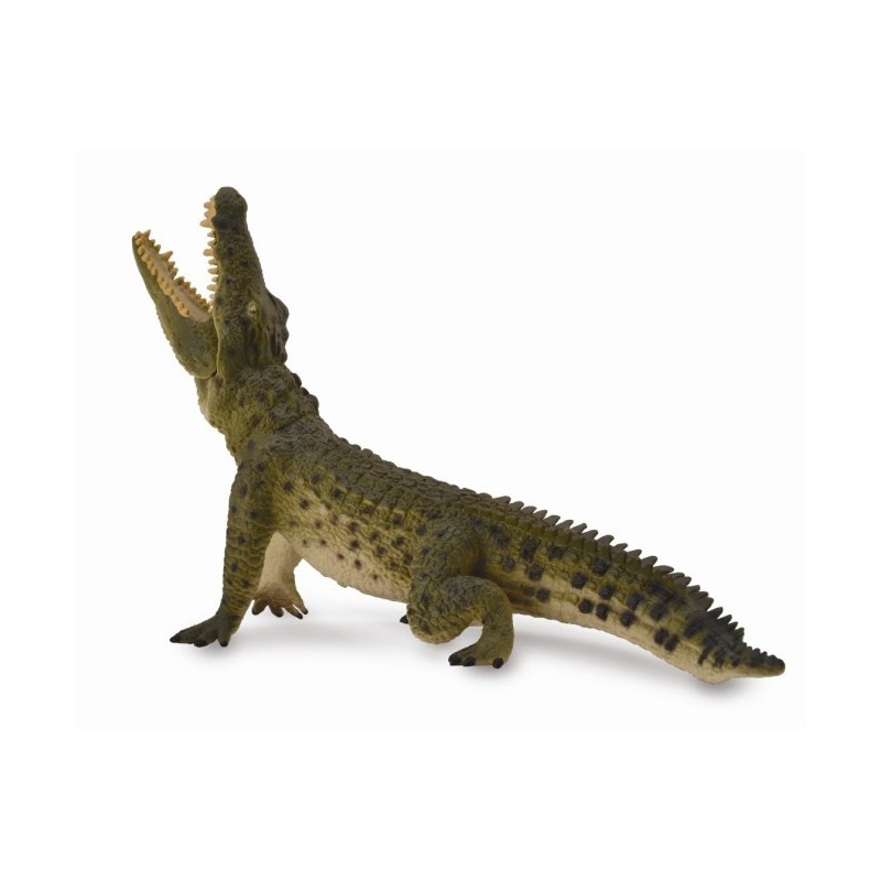 Cocodrilo del Nilo Saltando con Mandíbula Movible 18cm x 10cm Datos Curiosos: El cocodrilo del Nilo es un cocodrilo africano y el segundo reptil más grande del mundo. Tienen un metabolismo ectothermic, es decir que pueden soportar largos periodos de tiempo entre comidas, aunque cuando comen pueden comer hasta la mitad de su peso corporal.