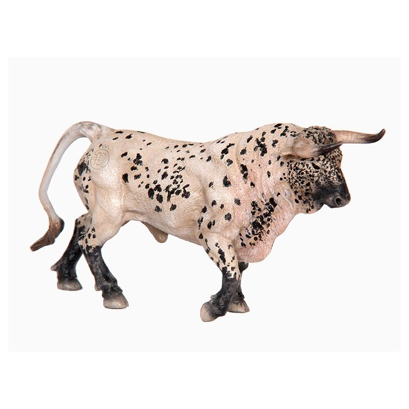 Toro bravo Berrendo trotando, réplica animal a escala pintada a mano con el máximo de detalles, esta figura forma parte de una colección 20 toros con diferentes pelajes y posiciones (trotando o embistiendo).