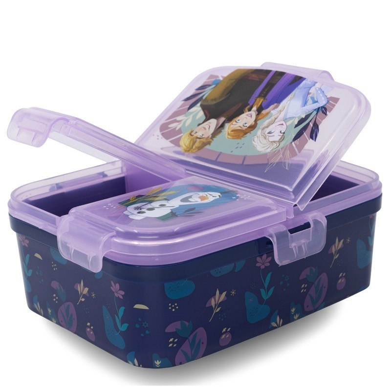Fiambrera infantil múltiple xl con 4 compartimentos de Frozen Original y práctica fiambrera con 4 compartimentos para plato principal, fruta, bocadillos o salsa, todo por separado para evitar que se mezclen sabores y olores. Ideal para a que los niños puedan llevar su almuerzo al parque, al colegio o en cualquier excursión fuera de casa. Fabricada en material resistente y con cierre de seguridad. Al estar decorada con atractivos diseños basados en los personajes principales de sus series favoritas, hará que los niños y niñas estén encantados de llevársela allá donde vayan - Material resistente - 4 compartimentos - Libre de BPA - Licencias oficiales
