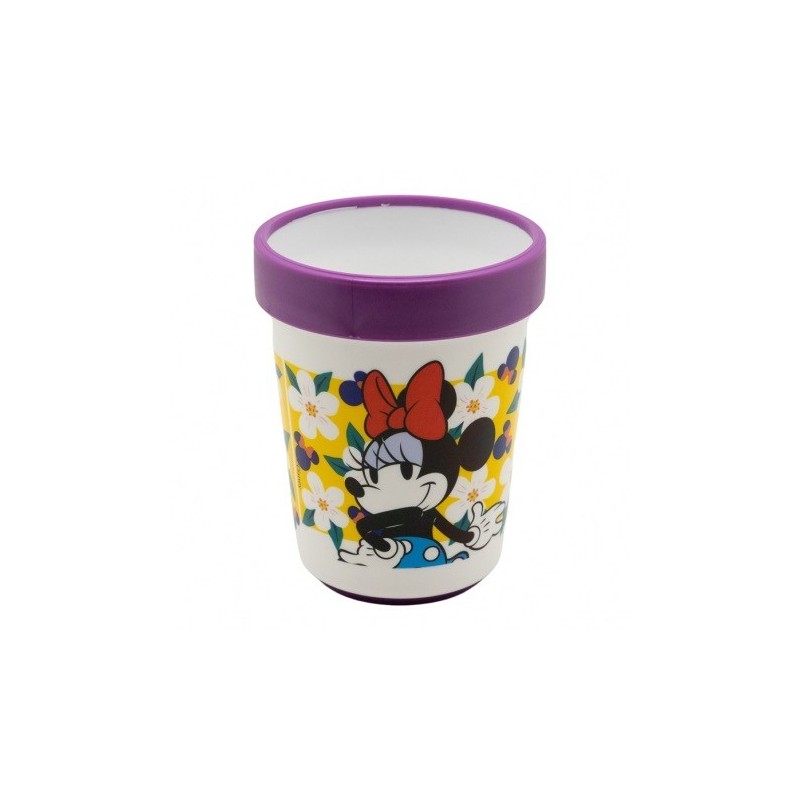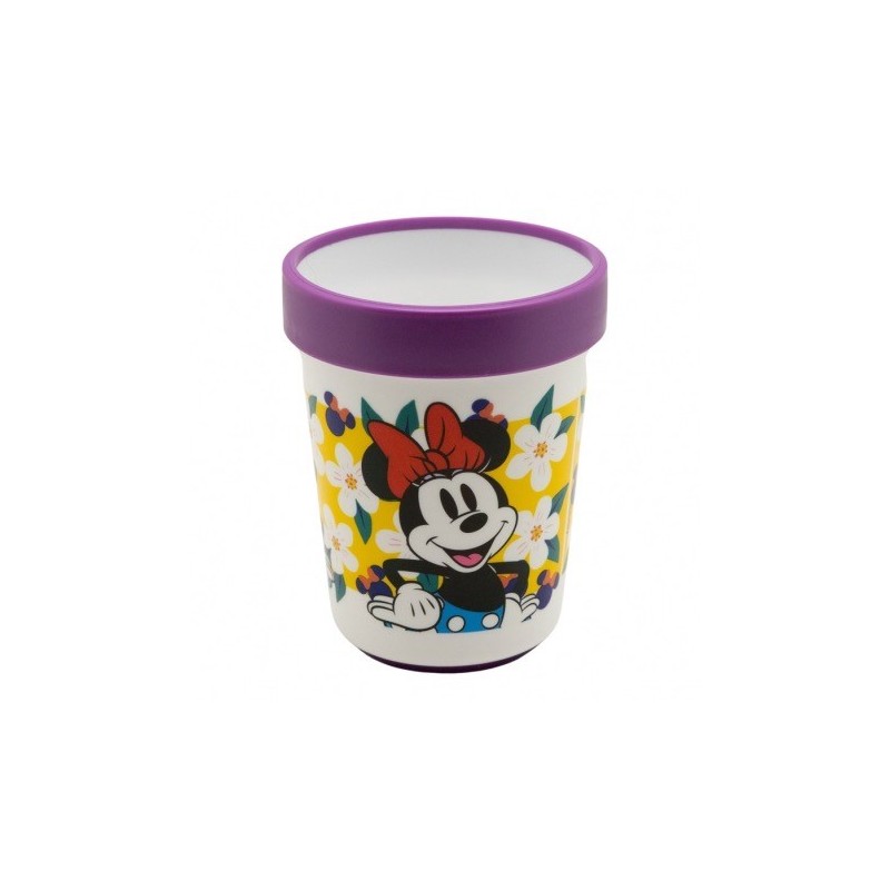 Vaso infantil reutilizable bicolor con base antideslizante de 260 ml de Minnie Vaso infantil con base antideslizante que se sujeta a cualquier superficie lisa. Este vaso reutilizable es apto para microondas y es de plástico libre de BPA. A los niñas y niñas les encantará ya que está decorado con sus personajes favoritos. - Capacidad: 260 ml
