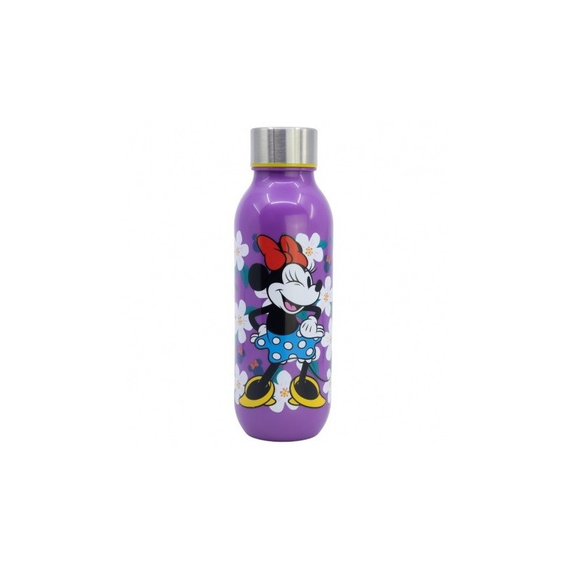 Botella de agua reutilizable infantil de plástico con tapón de acero y capacidad de 640 ml de Minnie Resistente botella de plástico con tapón de rosca de acero. - Capacidad: 640 ml - Libre de BPA - Fácil limpieza
