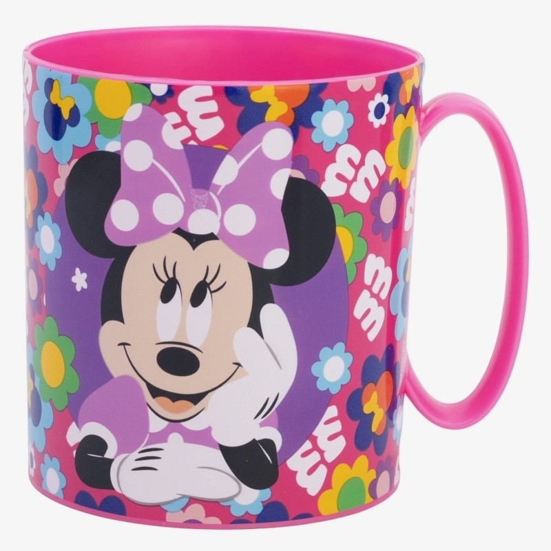 Taza infantil de plástico reutilizable para microondas de 390 ml de Minnie Práctica taza que hará las delicias de los más pequeños de la casa, al estar decorada con algunos de sus personajes favoritos del mundo del cine y la televisión. Es apta para el microondas, por lo que son ideales para calentar el desayuno de los niños a diario y, gracias a su material resistente, aguantará las caídas accidentales típicas del día a día. - Capacidad: 390 ML