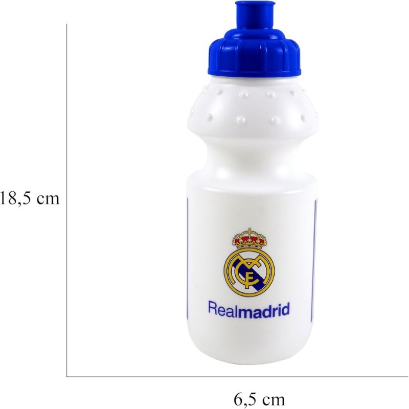Consigue esta bonita botella donde podrás llevar tus bebidas preferidas y rellenar tantas veces como quieras ¡Se convertirá en tu cantimplora del Real Madrid! CARACTERISTICAS: Botella con capacidad de 350 ml. Cuenta con boquilla de seguridad para evitar derrames. Ideal para llevar al colegio o para actividades deportivas y excursiones.