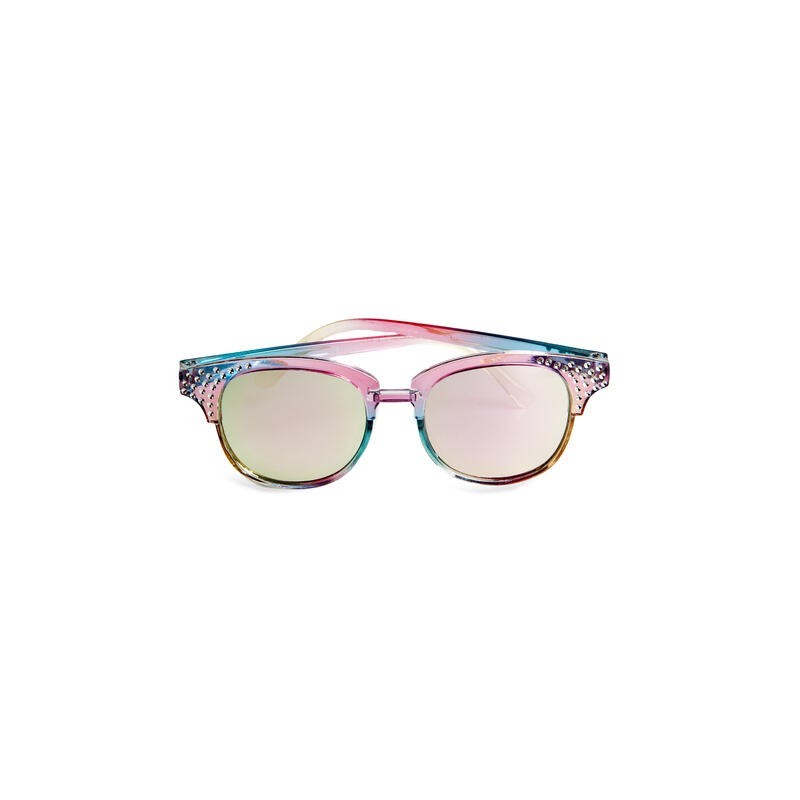 Medidas Producto: 4,5x14, 5x5,5 cm. Estas gafas de sol rosas tienen el marco y las varillas transparentes en rosa, azul y amarillo con apliques de cristales en el marco. Están levemente polarizadas para una visibilidad perfecta. Todas nuestras gafas de sol cuentan con filtro UV400 que protege completamente de los rayos del sol y vienen con una funda para guardarlas y llevarlas a todos lados.