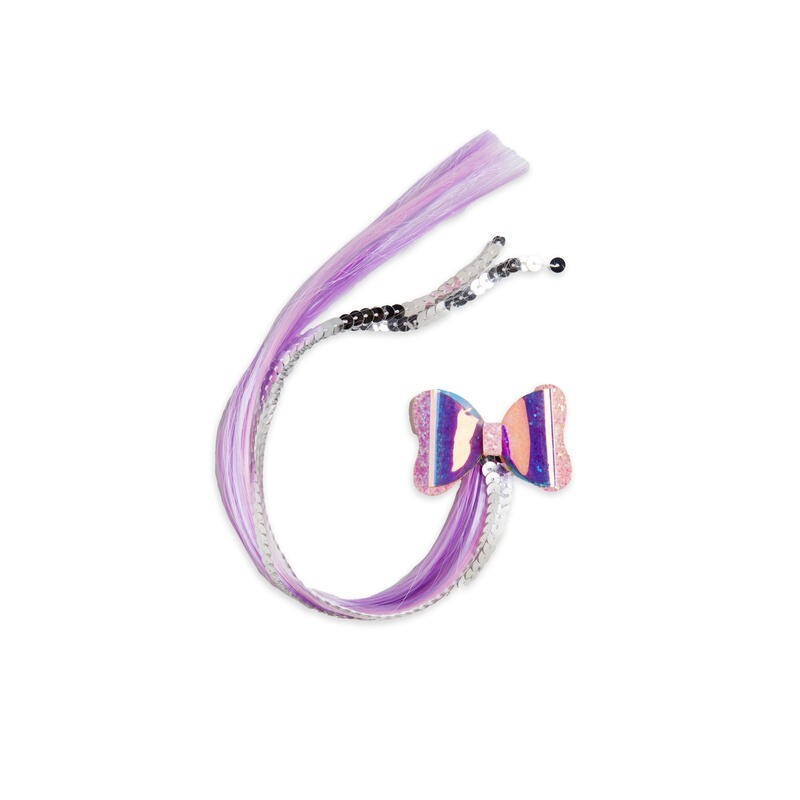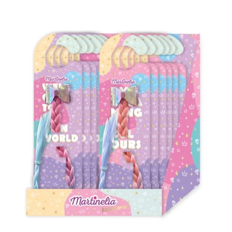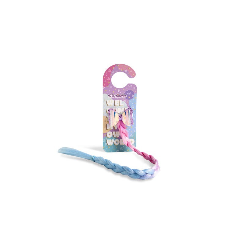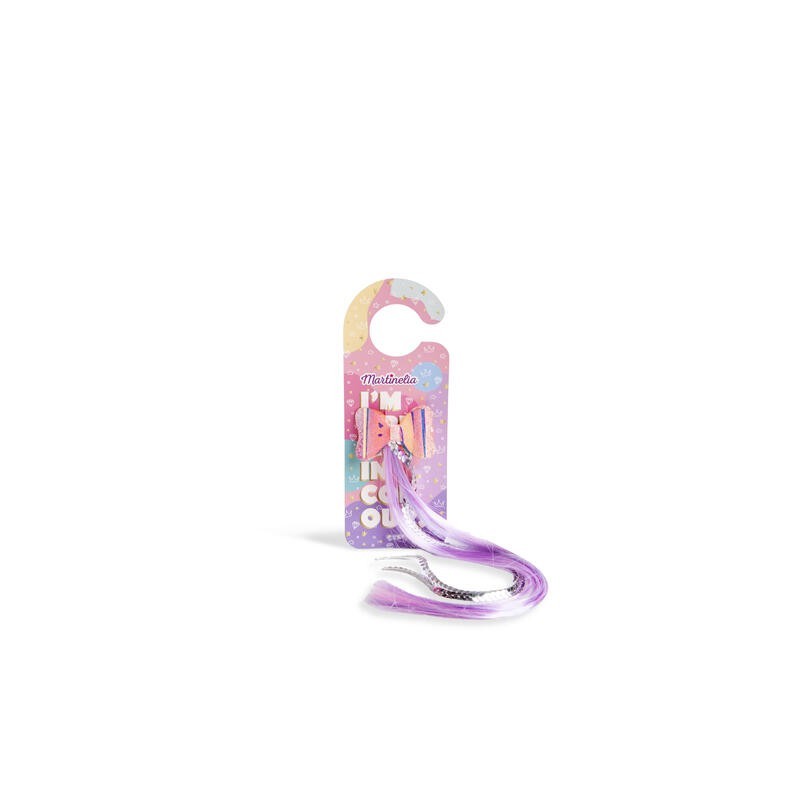 Medidas Producto: 43x9x2 cm. ¿Te gustaría tener el pelo de colores? Cada colgador de puerta contiene una extensión de pelo brillante y colorida para enganchar en tu cabello y darle un toque divertido a tu peinado. Elige entre una trenza rosas y azul, y una mecha púrpura con lentejuelas plateadas. ¡Crea tus peinados favoritos y dales tu toque único con las extensiones de Martinelia!