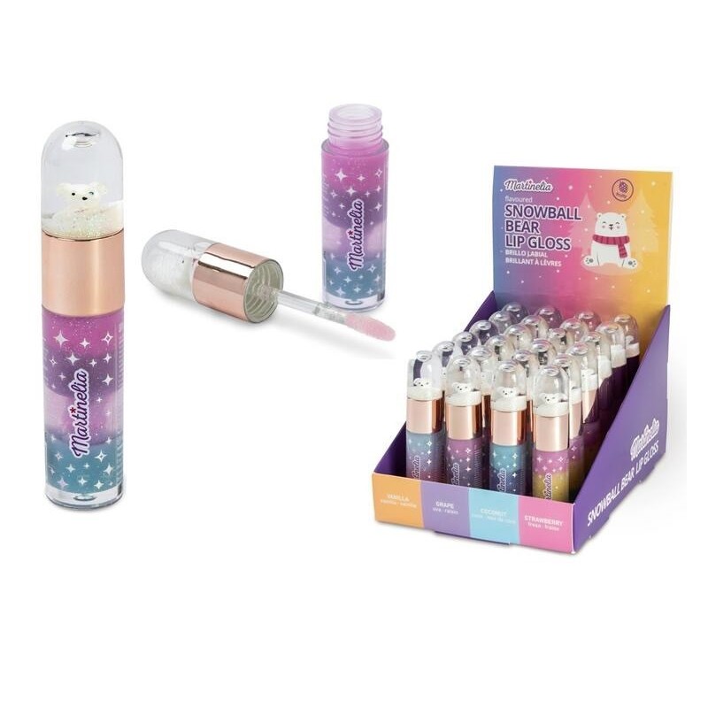 Brillo Labial 5.8ml ¡Este lip gloss es lo más bonito que habrás visto en mucho tiempo! Mantés los labios de l@s peques siempre bien hidratados con este brillo labial que incluye una bola de nieve con un precioso osito polar. Con sabor a cereza, melocotón, crema y arándano.
