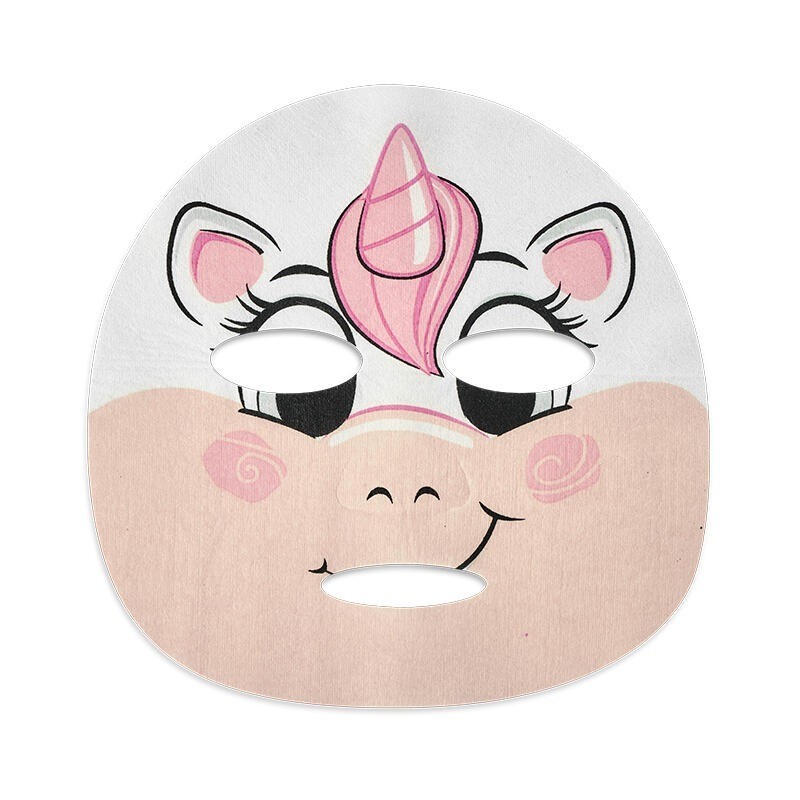 Mascarilla hidratante infantil con cara de unicornio. Indicada para niñ@s de 8 a 12 años. Monodosis.
