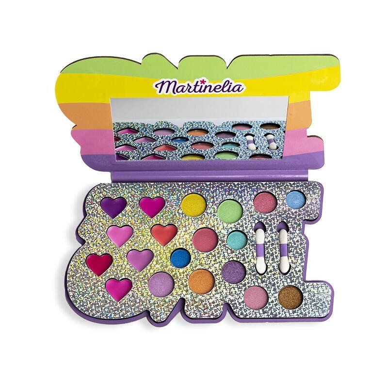 ¡Nos encanta! Esta paleta de maquillaje lo tiene todo para ser el producto esencial de tod@s l@s Rockstars. Su precioso diseño con forma de corazón y purpurina conquistará a más de un@, en su interior encontrarás 12 sombras de ojos, 6 brillos de labios, 3 cremas con purpurina y 2 aplicadores. ¡A tope de power! 12 sombras de ojos 7 brillos de labios 2 aplicadores