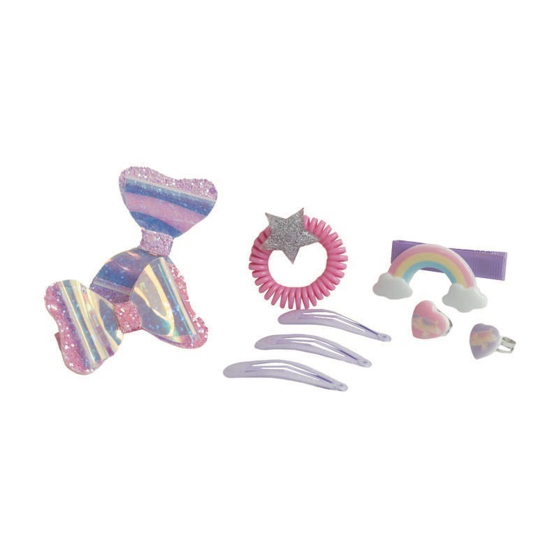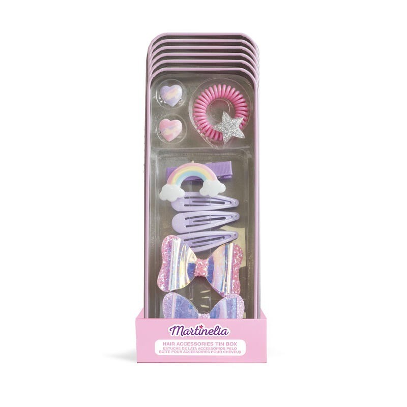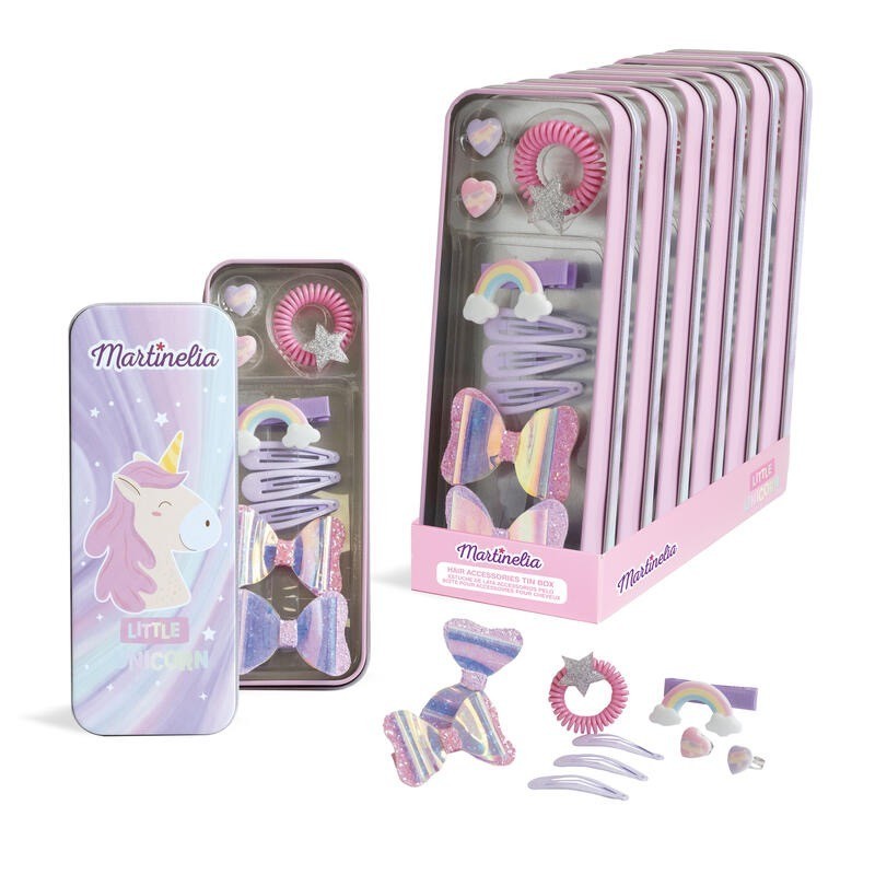 ¡Este pack de la colección Little Unicorn es el regalo perfecto para cualquier ocasión! Incluye una lata metálica con diseño de un unicornio, 2 anillos, 6 horquillas para el pelo y 1 goma para el pelo. La lata es perfecta para guardar joyas o accesorios, y las horquillas y gomas para el pelo son el complemento perfecto para cualquier peinado. 6 pinzas para el pelo 2 anillas coletero caja de lata