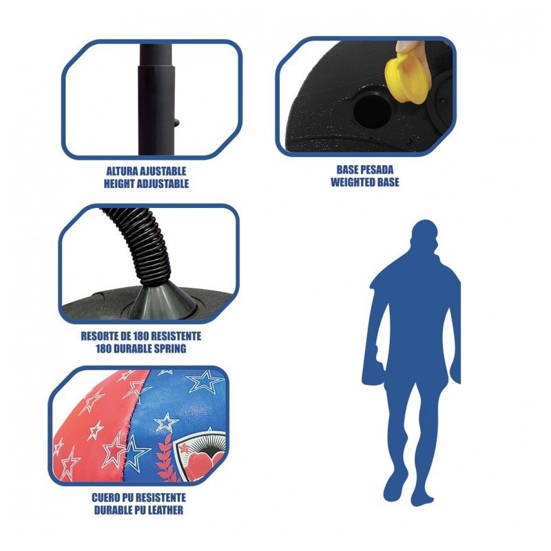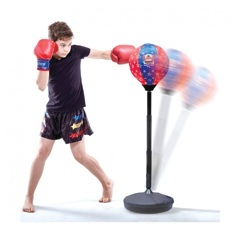 Edad recomendada: +5 años. Set de boxeo con saco y guantes acolchados. Mejora tus movimientos y diviertete derrochando toda tu energia frente al saco.