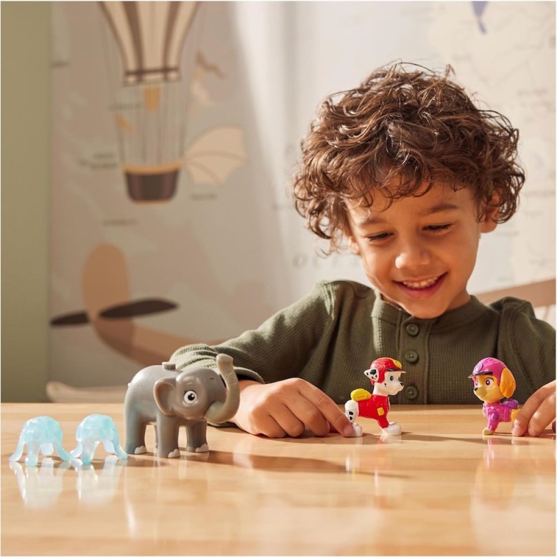 ¡Recrea las emocionantes aventuras de la exitosa serie animada en casa con los cachorros y los coches Patrulla Canina MARSHALL PATRULLA CANINA JUGUETES y SKYE: Vestidos con sus uniformes de Jungle Pups como en la serie de TV, Marshall Patrulla Canina y Skye Patrulla Canina ¡están listos para la acción EL AMIGO ELEFANTE: Cuando llegue el momento de realizar un rescate de infarto, conecta el proyectil de agua a la trompa del elefante, tira hacia atrás de la trompa y, a continuación, pulsa el botón para lanzar. ¡Lleva la emoción de la serie de televisión a casa con los coches de juguetes y los vehiculos PAW Patrol