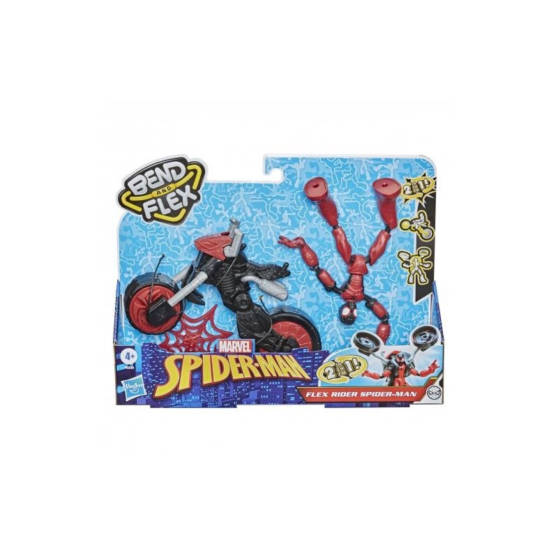 ¡Tuerce! ¡Gira! ¡Flexiona tu poder! Ahora puedes doblar, flexionar y jugar con tus superhéroes favoritos de Vengadores. Pack que incluye 1 figura Bend & Flex Spiderman y una moto de ataque de Avengers. Edad recomendada: +4 años.