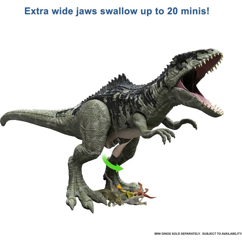 Jurassic World: Dominion llega a casa cargado de emoción y aventuras con este Giganotosaurio Supercolosal que tiene un papel protagonista en la película. ¡Arrasa a la hora de jugar con el apetito insaciable de esta figura de dinosaurio extragrande! Los niños y niñas sacarán su instinto más salvaje con esta figura de Giganotosaurio de más de 90 cm capaz de engullir minifiguras enteras. Las minifiguras se venden por separado y están sujetas a disponibilidad. Abre su barriga para liberar a las presas que se ha comido este dinosaurio carnívoro y vuelve a empezar de nuevo. ¡Imagina a lo grande! Esta gigantesca figura cuenta con un acabado marmolado y tiene unos colores, una forma y una textura auténticos que harán que los fans reconozcan fácilmente a este dinosaurio de Jurassic World: Dominion y quieran incluirlo en sus aventuras. Edad recomendada: +3 años.