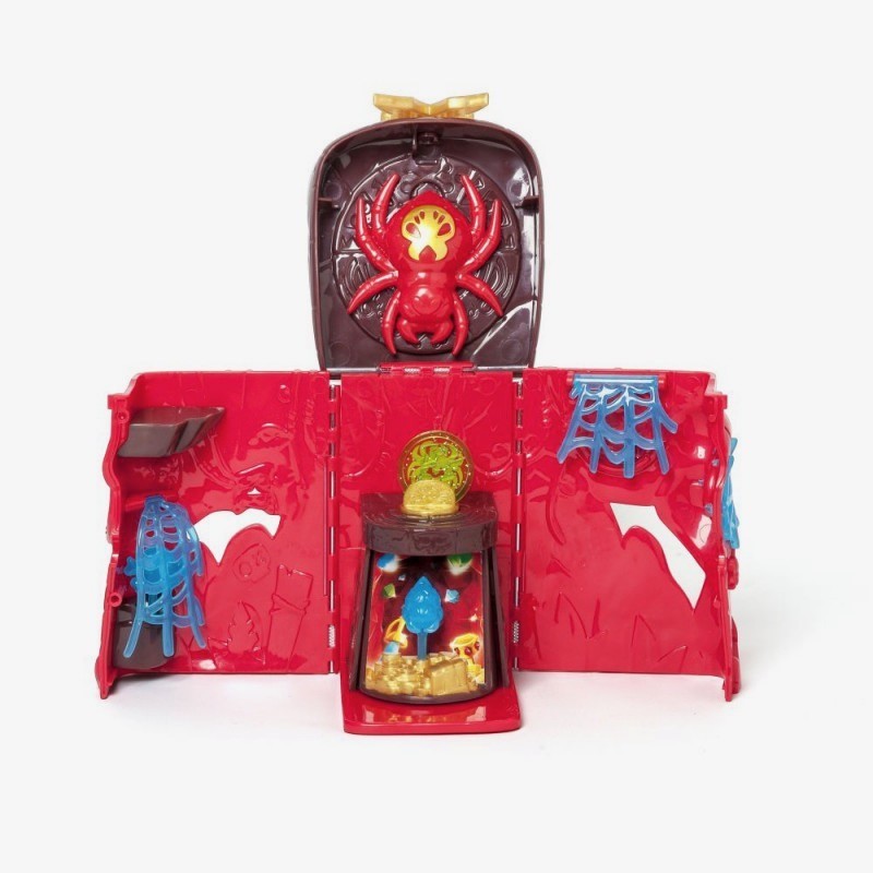 Edad recomendada: +3 años. Hace mucho tiempo atrás, el capitán Skully se escondió con su tesoro en la Skull Cave, una cueva secreta en las profundidades de Shark Island, custodiada por espeluznantes criaturas. Cuenta la leyenda que el esqueleto del propio capitán sigue allí, acechando a los insensatos que se acerquen a intentar robar su tesoro ¿Serás tú uno de esos valientes? Encuentra la combinación para abrir la cueva. Una vez dentro, hallarás al Capitán Skully y una araña gigante como guardiana a la que deberás hacerle frente. ¡Solo entonces recuperarás el tesoro exclusivo debajo de su tela! Úsalo para descubrir el accesorio mágico que te permitirá controlar al temible arácnido podrás sujetar la moneda al accesorio, que tiene un efecto cristal y ?glitter. ¡Ahora eres el Piratix más Piratix de todos los tiempos! Contiene. · 1 Skull Cave. · 1 Piratix exclusivo. · 2 accesorios cristal (1 arma y 1 cetro). · 1 araña. · 1 tesoro exclusivo.