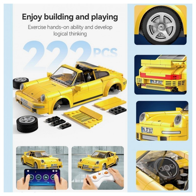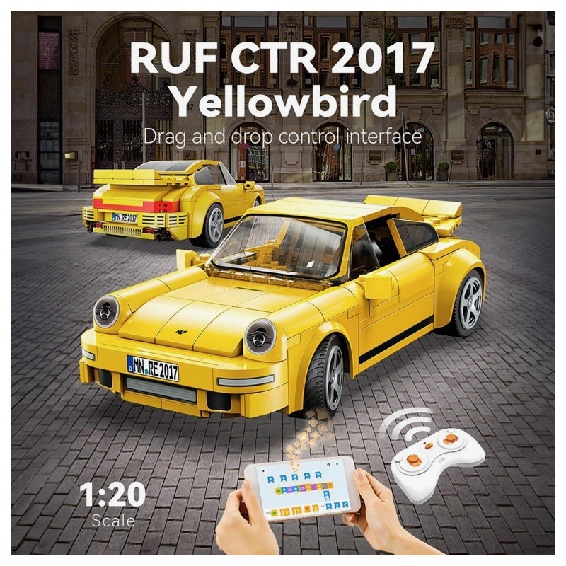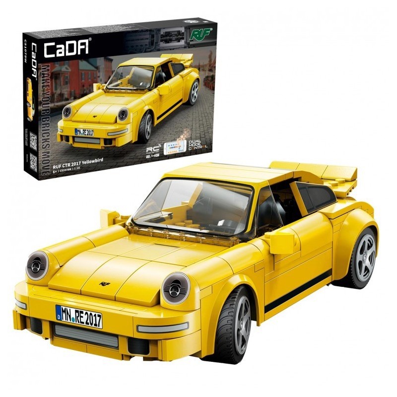 Edad recomendada: +6 años. Replica licenciada de RUF en color amarillo. El vehículo puede ser controlado por el control remoto de 2.4GHZ y la aplicación Bluetooth, disponible en versiones Android e IOS. Disfruta de tus turnos con los 4 modos de conducción que te ofrece la App de CADA (giroscopio, scratch de programación, control desde tu móvil o editar tu propia ruta).