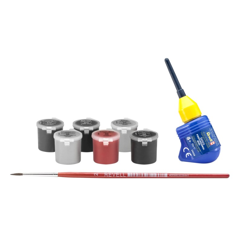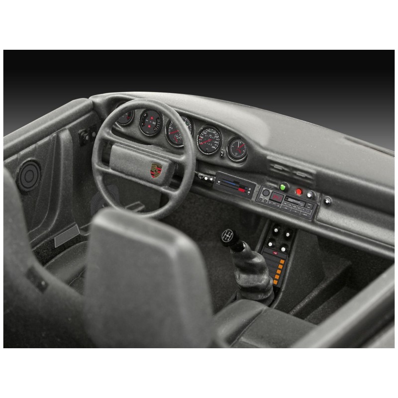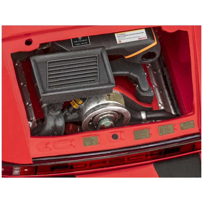Edad recomendada: +12 años. Escala: 1:24 Número de piezas: 86 Longitud: 180 mm Anchura: 77 mm Altura: 53 mm Maqueta detallada del Porsche 911 Turbo de 260 CV, también conocido como Porsche 930, que en el momento de su lanzamiento a partir de 1975 era el coche deportivo de serie más rápido del mundo. - Caja del motor separada - Diversas piezas cromadas como las llantas y piezas del motor - Calcomanía con placas de matrícula (D, A, NL, B, F, GB, E, I, CH, USA) Además de los colores básicos, también se incluyen pegamento y pinceles.
