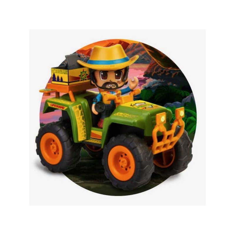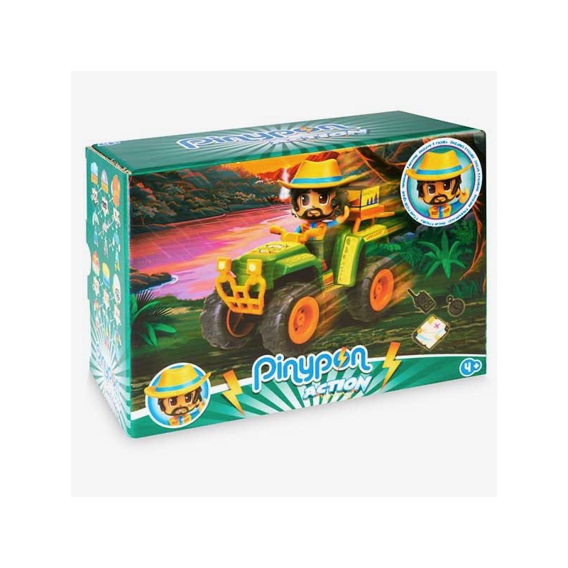 Quad de Pinypon Action Wild para explorar los rincones más lejanos de la selva. Tiene ruedas especiales para conducir por la tierra de la selva. Incluye coche quad, figura de explorador Pinypon Action Wild y pequeños accesorios. Las figuras y accesorios de Pinypon Action son ideales para el desarrollo de la motricidad fina; imaginación y el aprendizaje de vocabulario Edad recomendada: +4 años