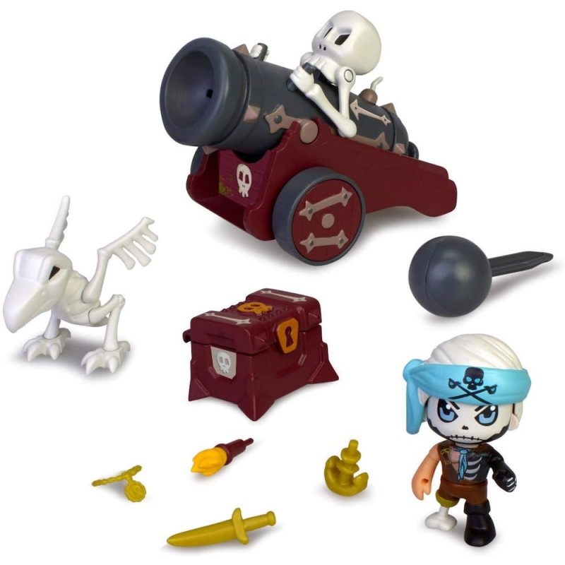 Esencial en las batallas entre piratas, este set de un cañón que lanza grades bolas con un cofre de tesoro está protegido por un pájaro esqueleto. Incluye 1 figura de pirata fantasma y pequeños accesorios. Las figuras y accesorios de Pinypon Action son para el desarrollo de la motricidad fina, la imaginación y el aprendizaje de vocabulario. Edad recomendada: +4 años.