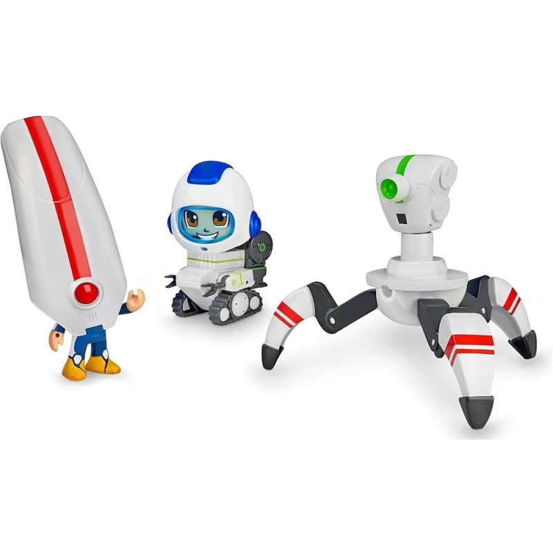 Un set con todo lo necesario para las exploraciones y misiones en el espacio con 3 figuras; 2 robots y un astronauta Pinypon Action. Es el complemento que se necesita para los viajes al espacio en el cohete. La figura y los robots están compuestos por piezas intercambiables para poder hacer muchas mezclas divertidas de figuras de medio robot y medio astronauta. Edad recomendada: +4 años.