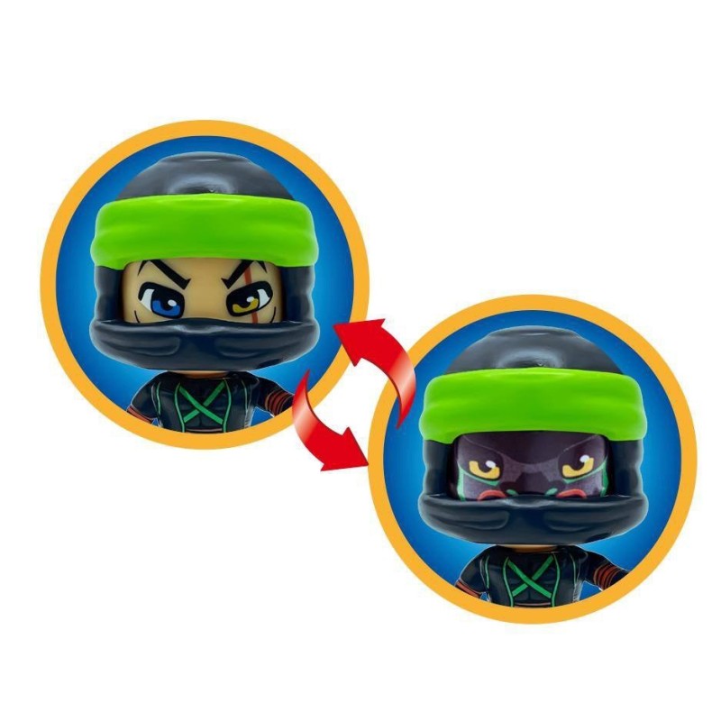 Figura Ninja Demon con cara de ninja y demonio con una moto decorada a juego con su traje y cuatro accesorios que representan armas ninja. Figura Pop&Swap intercambiable con otra de la colección. Edad recomendada: +4 años.