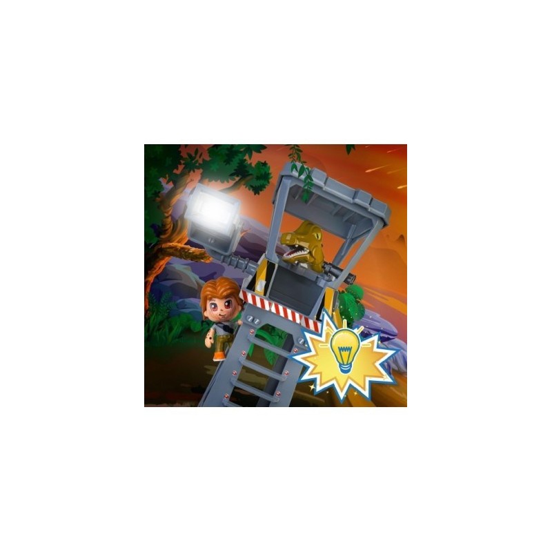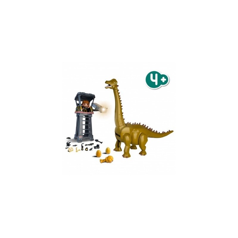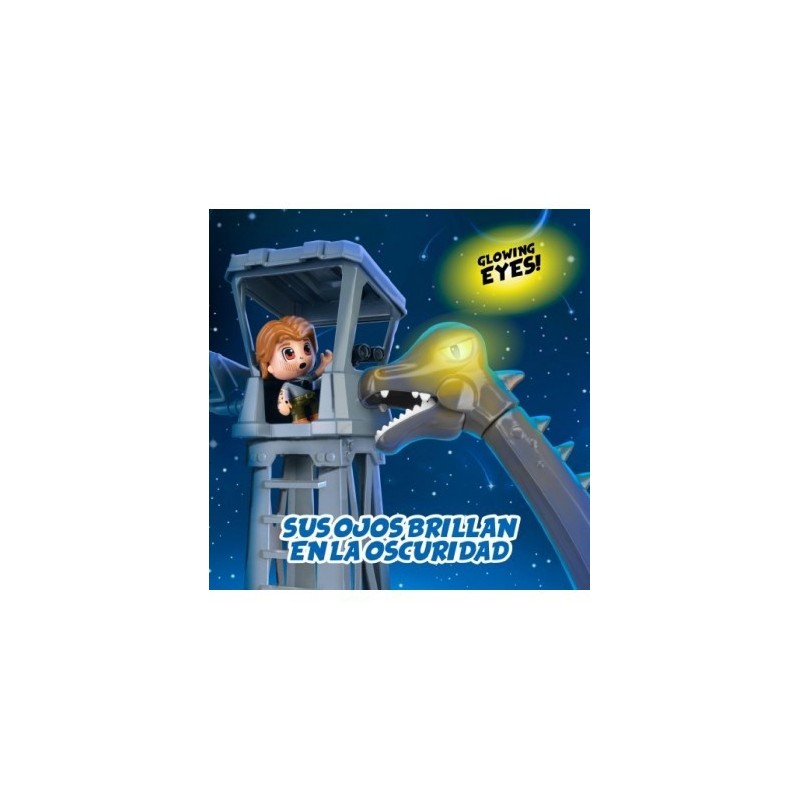 ¡Llega el dinosaurio más grande! ¡El gran diplodocus tiene un tamaño y ojos que brillan en la oscuridad! El vigilante lo ha avistado desde su torre, que al escuchar un ruido ha accionado la luz y se ha encontrado con sus ojos brillando en la oscuridad. Tiene piernas, brazos, cola y boca articulados. Tanto el dinosaurio como la figura del vigilante son Pop&Swap, por lo que podrás intercambiar sus piezas con las de la figura de Pinypon Action y los dinosaurios de la colección (también con robots). La figura del Pinypon Action tiene doble cara. Un complemento imprescindible para la colección de dinosaurios de Pinypon Action. Incluye 9 accesorios para completar el juego.