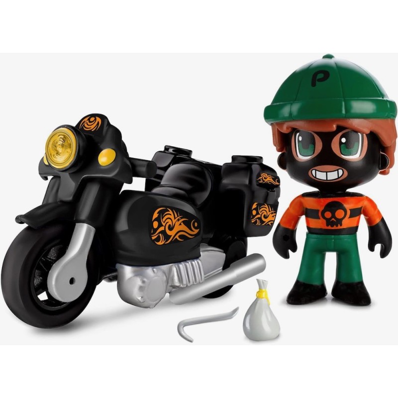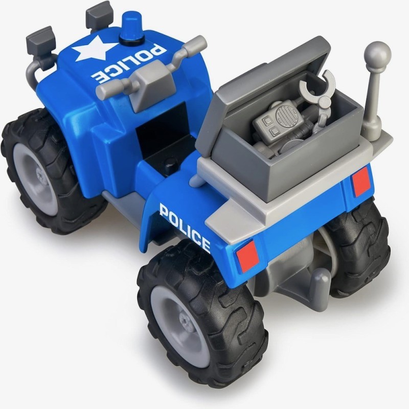 Set de juguete exclusivo con 3 vehículos de policía diferentes para jugar: un coche, una moto y un quad. El pack incluye 3 mini figuras diferentes de la temática: 2 policías diferentes y un muñeco de un ladrón. También incluye varios accesorios pequeños que completan la experiencia de juego. Las figuras Pinypon Action cuentan con las características rincipales de la marca, tienen piezas intercambiables y varias expresiones faciales.