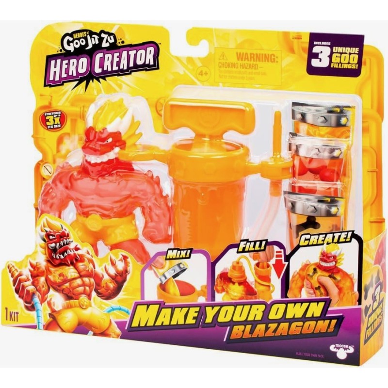 Sumérgete en el Universo GOO JIT ZU; HERO CREATOR para crear tu propia figura; estira y estruja hasta 3 veces su tamaño. Utiliza el Hero Creator para diseñar tu propia versión del icónico Blazagon, personalizando detalles para una figura única Amplía tu colección con tus propias creaciones. Aprieta, estira y estruja al personaje y volverá siempre a su forma original; puede estirarse hasta 3 veces su tamaño. Heroes of Goo Jit Zu proporciona a los niños una nueva manera GOOEY de jugar con juguetes de acción, sin ensuciar.