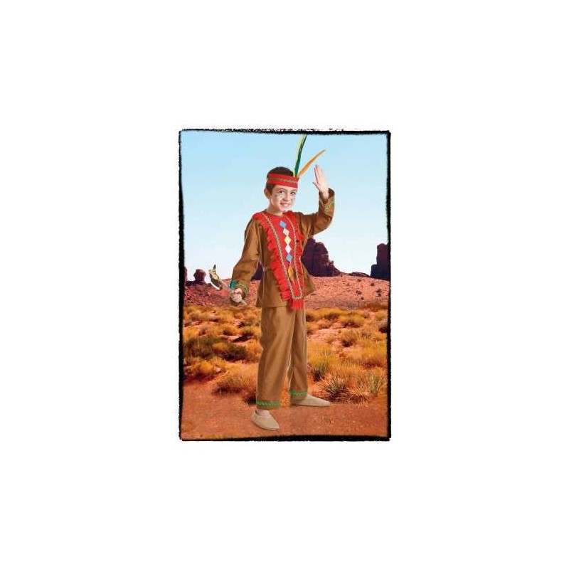 Disfraz indio infantil Contiene: casaca, pantalón y cinta con pluma