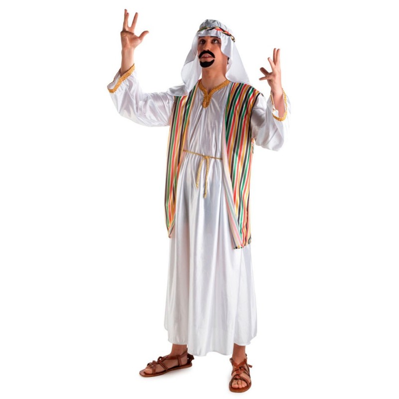 Disfraz jeque arábe adulto Incluye: túnica, chaleco, cinturón, tocado y cinta