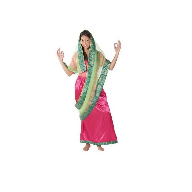 Disfraz de mujer hiindú. Talla M. Contiene falda con echarpre y camisa.