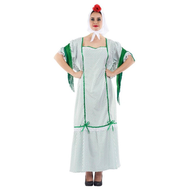 Disfraz de chulapa para adulta. Talla: M. Contiene: vestido, mantón y pañuelo.