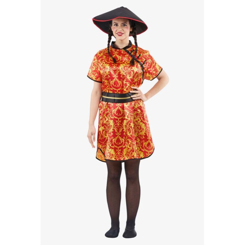 Disfraz de china para mujer adulta. Talla: M. Contiene: vestido, cinturón y gorro.