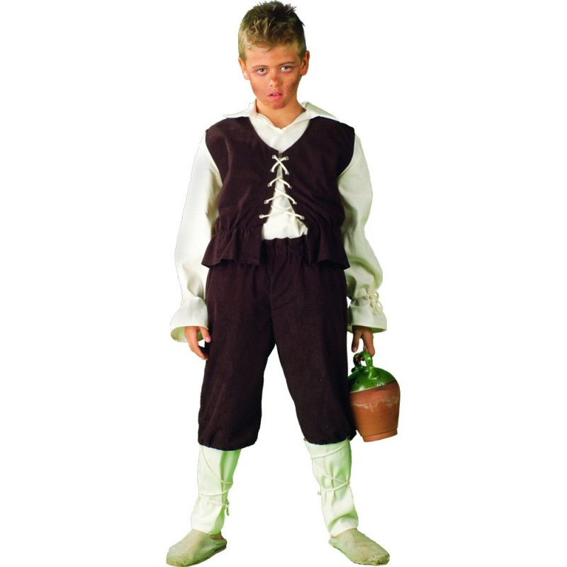 Disfraz infantil de escudero. Talla: 6-7 años. Contiene: pantalón, camisa, chaleco y calzas.