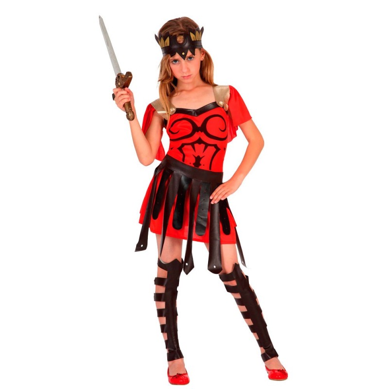 Disfraz infantil de guerrera romana. Contiene: vestido, gorro y tobilleras
