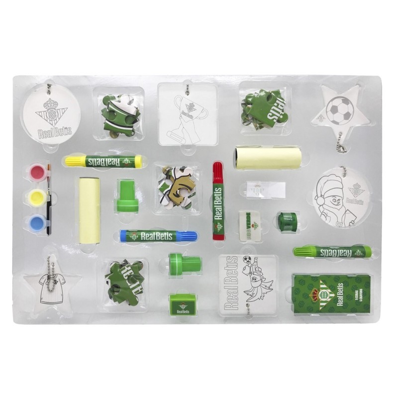 CARACTERÍSTICAS: Este calendario de adviento cuenta con un montón de sorpresas en su interior: pegatinas, sellos, brazalete, puzzle o pinturas, entre otros detalles pensados para amenizar la espera de las Navidad a todos los béticos.