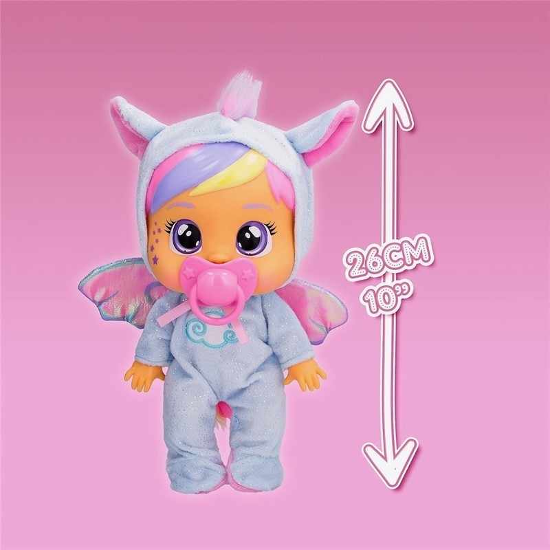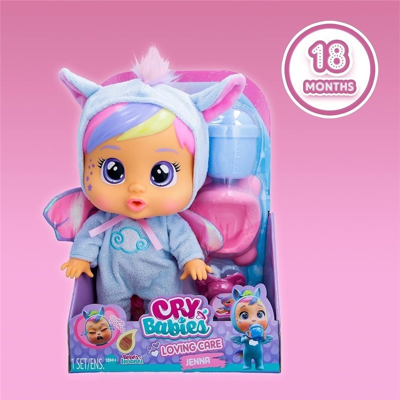 Conoce a Jenna Loving Care de los Bebés Llorones mundo Fantasy, ahora en un tamaño reducido y mucho más ligero! Viene con su pijama personalizado y tiene los ojos y el pelo pintado. Incluye un biberón para simular darle de beber, un urinal y su chupete a conjunto. Además, como todos los Bebés Llorones, llora lágrimas de verdad!