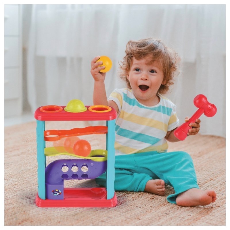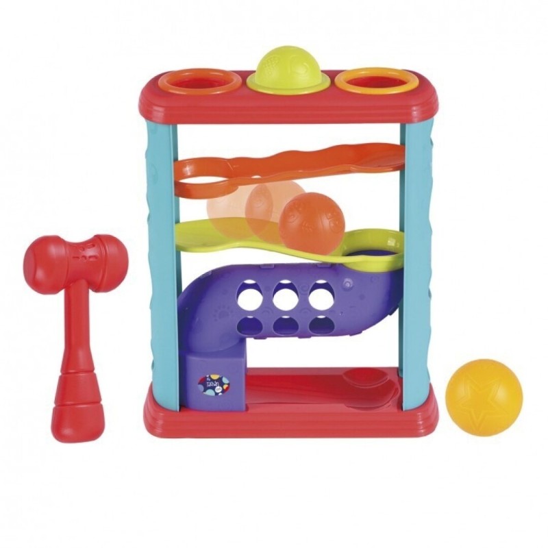 Esta pelota multicolor es excelente para practicar el martilleo, fomenta la destreza, la coordinación mano-ojo, la manipulación, el movimiento de los brazos, la causa y el efecto. El diseño del martillo y las bolas está especialmente diseñado para las manos pequeñas y es adecuado para un fácil agarre. A su hijo le encantará ver cómo la bola se desliza de capa en capa. Las bolas lisas de lijado caen después de martillar/golpear y hacen que las bolas rueden por el vertedero y caigan en la bandeja inferior. Mantenga a los niños ocupados con este particular juguete de acción de golpear bolas, y es benecifial para hacer crecer la mente de su babys. Esta pelota es un regalo de cumpleaños perfecto para su hijo. Lo desenvolverán y jugarán juntos.